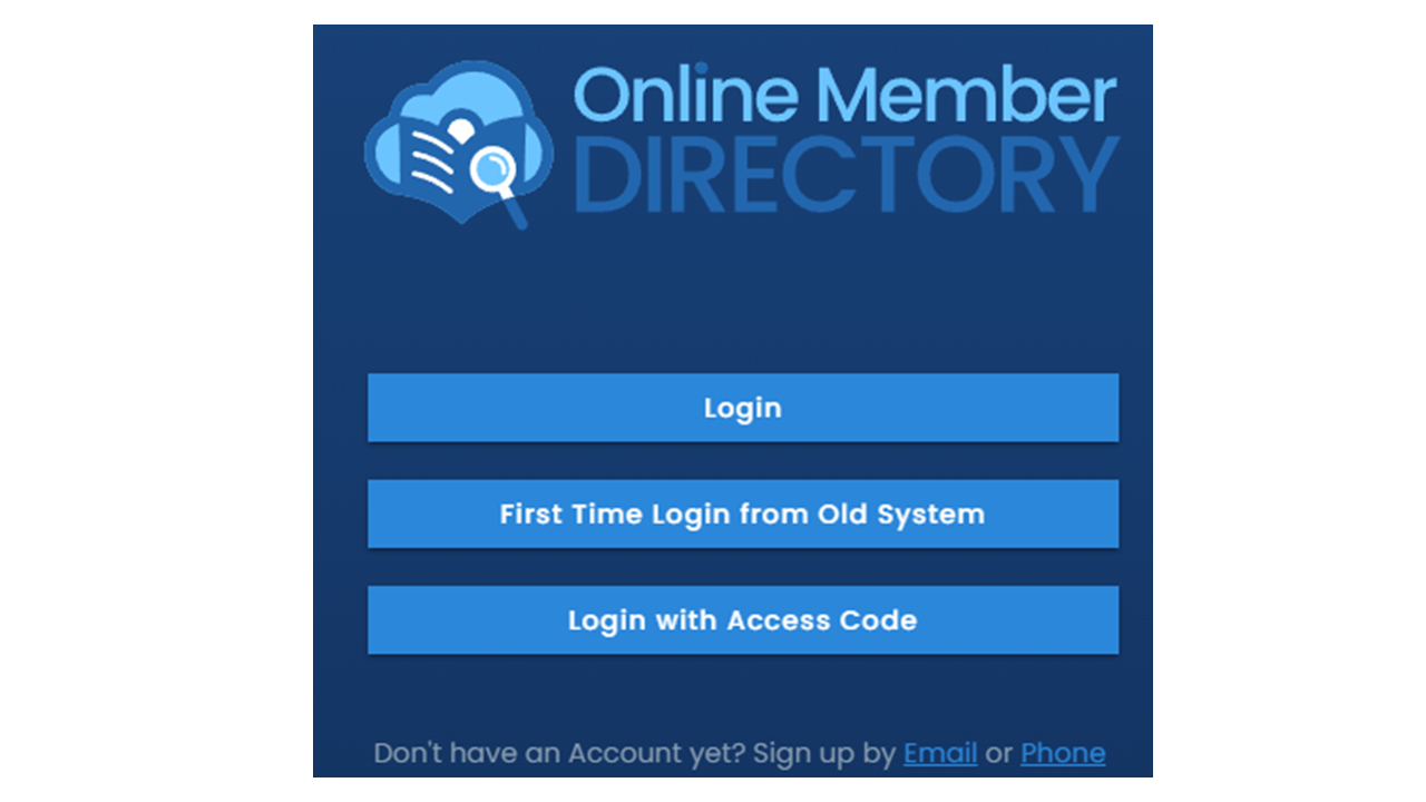 If you are New to the church or just new to the directory, sign up for an account using your email or phone. You will be notified once your access has been approved. If you were in the old version of the software, do NOT sign up for another account. See info below.